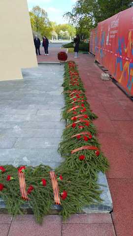 Эта живописная гирлянда для возложения создана из живых хвойных ветвей, украшенных красными гвоздиками и георгиевскими лентами. Насыщенные красные цветы гармонично сочетаются с зеленой хвоей, создавая ощущение свежести и естественности. Георгиевская лента добавляет особый символический акцент, делая эту гирлянду подходящей для церемоний возложения в честь памятных дат и событий. Благодаря своему естественному виду и тщательному оформлению, эта гирлянда подчеркнет серьезность момента и достоинство торжественного мероприятия.
