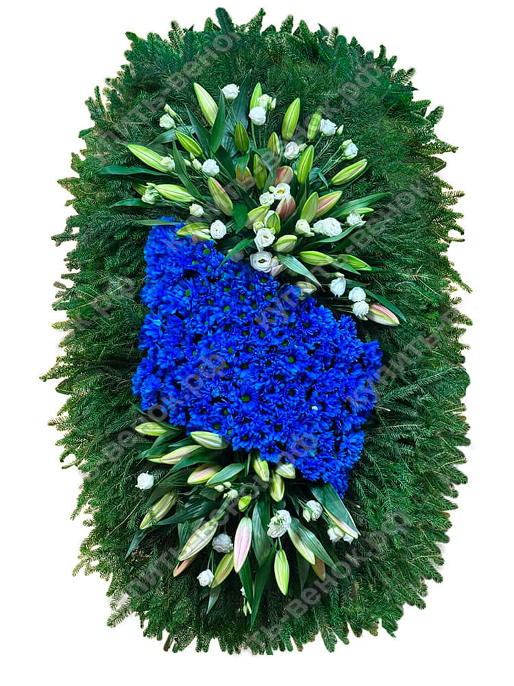 Цветы: живые, высота: 180 см, состав: синие хризантемы, лилии, хвоя