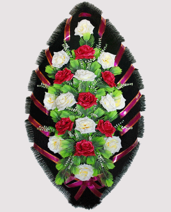 Красные и белые розы создают трогательную композицию, которая подойдет для прощания с сами светлыми людьми, ставившими в сердцах близких теплый след и нежные воспоминания. Траурный венок из искусственных цветов выполнен в стилистике современной ритуальной флористики, поэтому подойдет для любой церемонии прощания, не зависимо от ее особенностей.